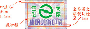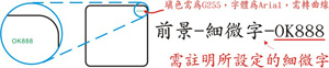 - 肉眼無法看清其字樣,須用放大鏡方可看到的細微字。完稿時顏色設定為G255,限英文字母或阿