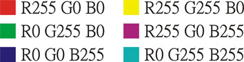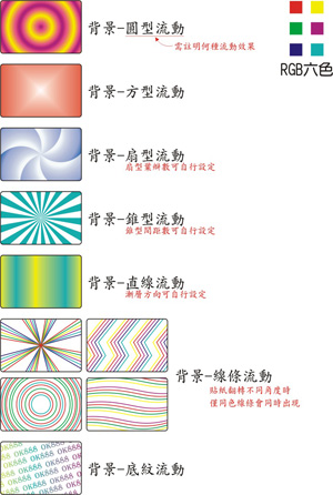 B.如製作漸層,漸層顏色務必為指定之 RGB六色,並轉為RGB色彩模式的點陣圖,解析度600dpi。