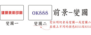 A.顏色設為紅R255(變圖一)、藍B255(變圖二)。