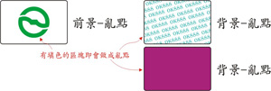 A.完稿時設定為亂點的區塊無論是前景或背景,需填上顏色,並註明為亂點。